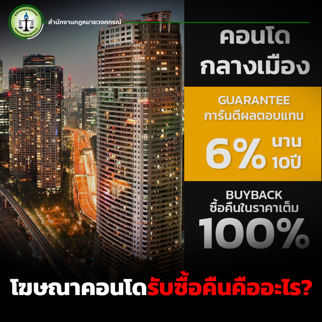 โฆษณาคอนโดที่มีข้อเสนอ “รับซื้อคืน” หรือ Buy-Back Guarantee เป็นแคมเปญส่งเสริมการขายของผู้พัฒนาโครงการ ซึ่งให้คำมั่นว่าสามารถซื้อคอนโดคืนจากผู้ซื้อในราคาที่กำหนดหลังจากครบระยะเวลาหนึ่ง เช่น 3 ปี, 5 ปี หรือ 10 ปีโดยข้อเสนอเหล่านี้อาจมีเงื่อนไขต่าง ๆ เช่น