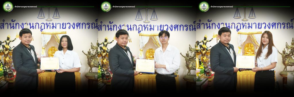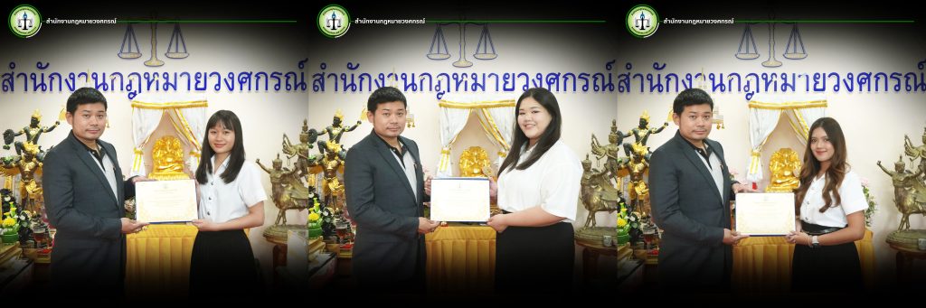 ในโอกาสนี้ ทนายอาร์ม ศุภสิทธิ์ ศิริ ผู้จัดการสำนักงานกฎหมายวงศกรณ์ ได้มอบประกาศนียบัตรรับรองการฝึกงานให้แก่นักศึกษา พร้อมกล่าวให้โอวาทและข้อคิดดี ๆ เพื่อเป็นแนวทางในการนำความรู้และประสบการณ์ที่ได้รับไปต่อยอดในการประกอบอาชีพในอนาคต