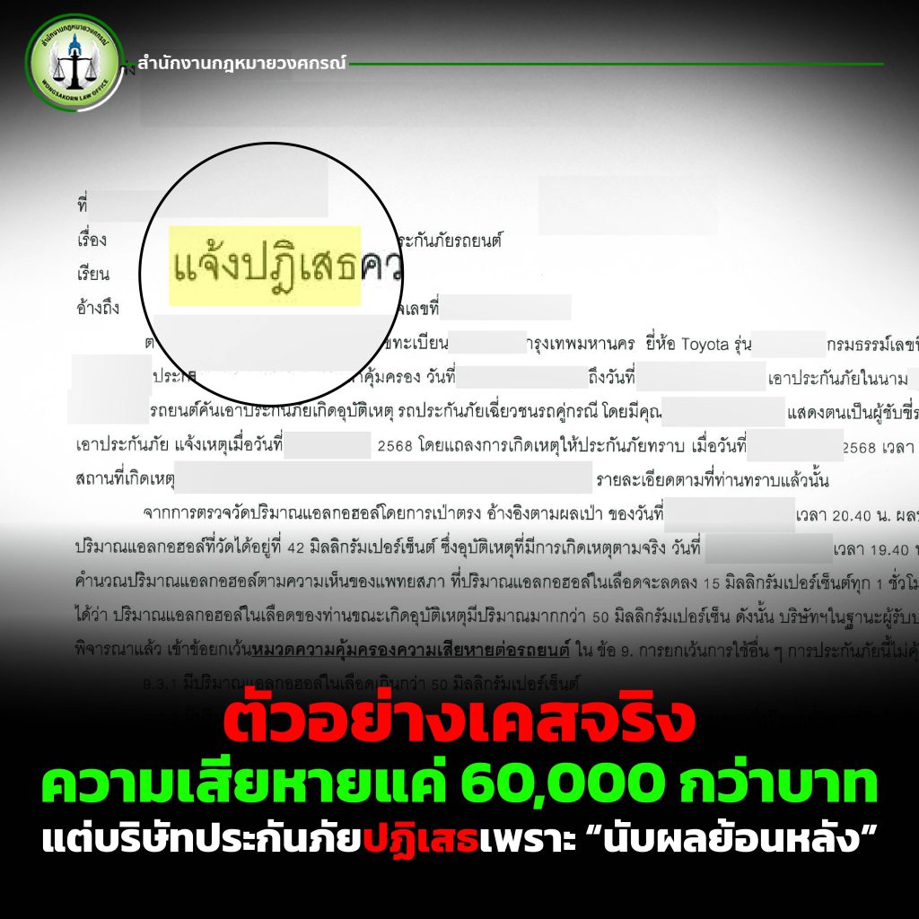 ตัวอย่างเคสจริง: ความเสียหายแค่ 60,000 กว่าบาท แต่บริษัทประกันภัยปฏิเสธเพราะ “นับผลย้อนหลัง”