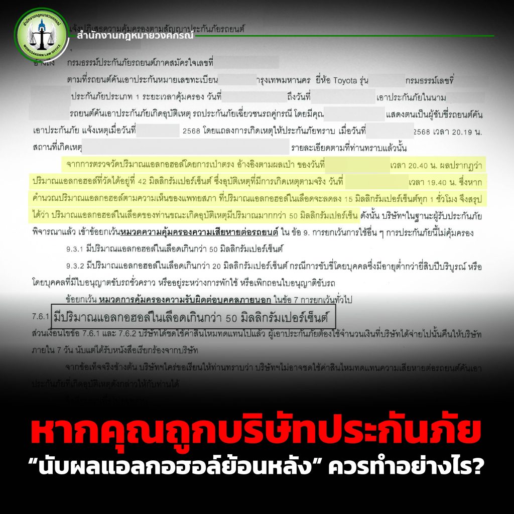 หากคุณถูกบริษัทประกันภัย “นับผลแอลกอฮอล์ย้อนหลัง” ควรทำอย่างไร?