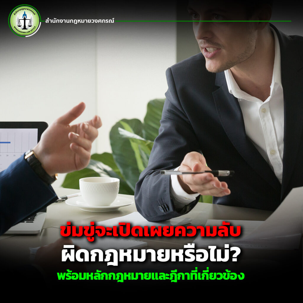 การข่มขู่จะเปิดเผยความลับของผู้อื่น ไม่ว่าจะเป็นข้อมูลส่วนตัว เรื่องส่วนตัว หรือข้อมูลที่อาจสร้างความเสียหาย ถือเป็นการกระทำที่อาจเข้าข่ายความผิดทางกฎหมาย ทั้งในทางอาญาและทางแพ่ง โดยเฉพาะหากมีเจตนาเพื่อเรียกร้องผลประโยชน์หรือบังคับให้บุคคลอื่นทำตามความต้องการของตนเอง