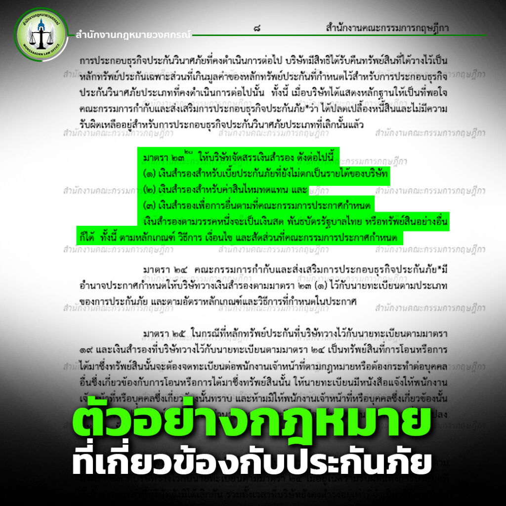 ตัวอย่างกฎหมายที่เกี่ยวข้องกับประกันภัย