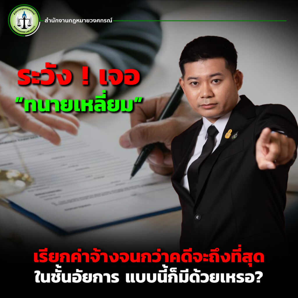 เรื่องของค่าจ้างทนายเป็นสิ่งสำคัญที่ลูกความต้องใส่ใจ และเลือกทนายความที่โปร่งใส ไม่ใช้ภาษาคลุมเครือเพื่อเรียกเก็บค่าจ้างเพิ่มเติม “ทนายเหลี่ยมเรียกค่าจ้างถึงที่สุด” เป็นตัวอย่างของพฤติกรรมที่ลูกความต้องระวัง และควรเลือกใช้บริการจากทนายที่มีจรรยาบรรณหากคุณต้องการที่ปรึกษาทางกฎหมายที่ไว้ใจได้ สำนักงานกฎหมายวงศกรณ์ พร้อมให้บริการอย่างมืออาชีพ ปรึกษาเราได้ทันที >>ติดต่อเรา<<