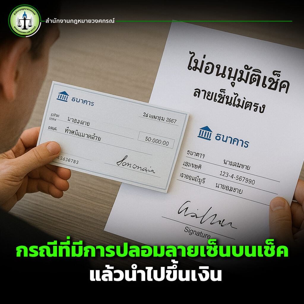 อย่างที่ทราบกันดีว่า “เช็ค” เป็นเอกสารสำคัญทางการเงินที่ใช้ในการทำธุรกรรมต่าง ๆ ไม่ว่าจะเป็นการชำระค่าสินค้า การกู้ยืมเงิน หรือธุรกรรมทางธุรกิจอื่น ๆ แต่หากเช็คถูกปลอมแปลงลายเซ็นแล้วมีการนำไปขึ้นเงิน อาจส่งผลกระทบทั้งต่อเจ้าของเช็ค ธนาคาร และผู้รับเช็คได้ แล้วในกรณีแบบนี้ ใครต้องรับผิด? และมีแนวทางป้องกันอย่างไรบ้าง? มาหาคำตอบกันในบทความนี้จากสำนักงานกฎหมายวงศกรณ์