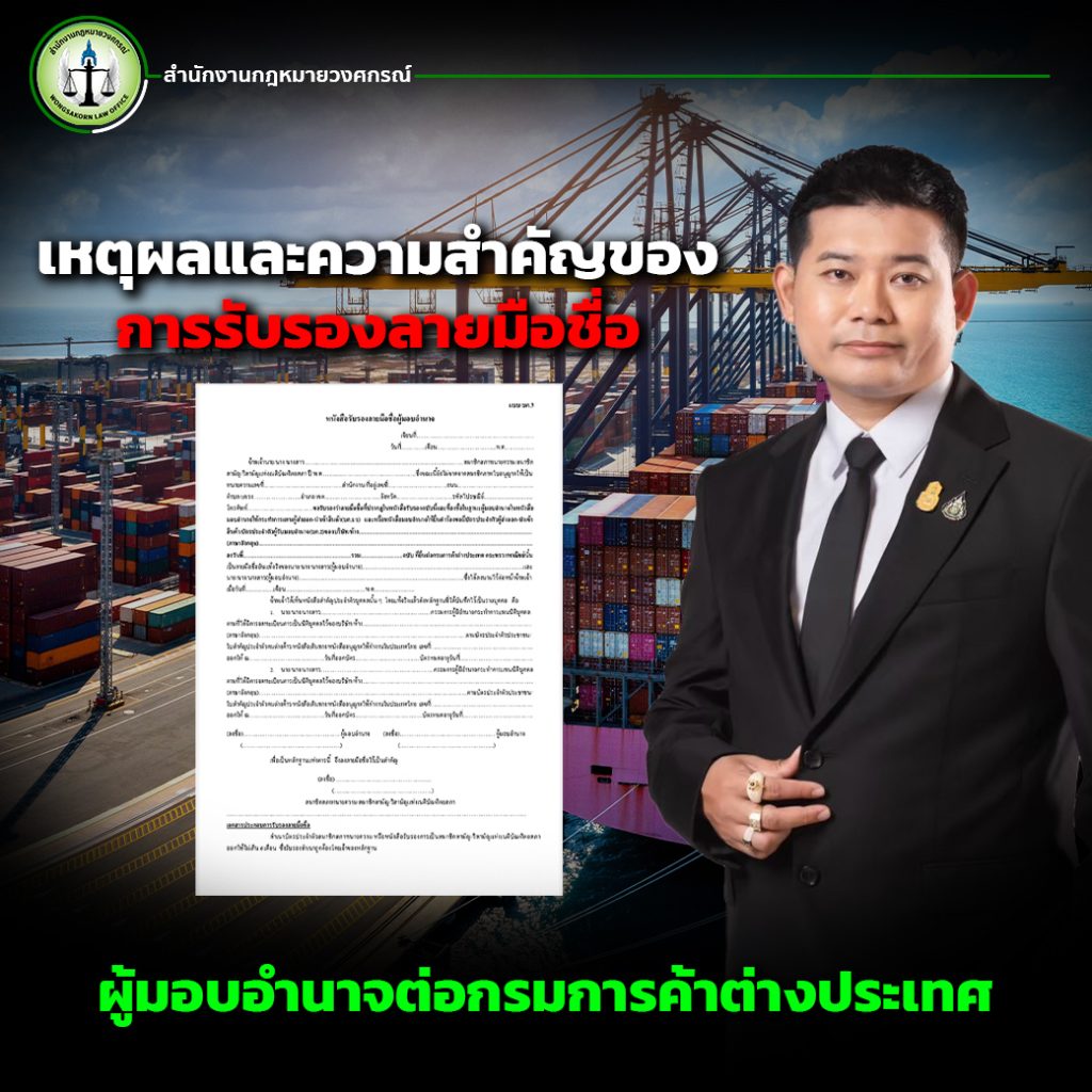 บทความนี้จากสำนักงานกฎหมายวงศกรณ์จะอธิบายถึงความหมายของการรับรองลายมือชื่อ ความสำคัญของกระบวนการนี้ และเหตุผลที่ทำไมการรับรองลายมือชื่อของผู้มอบอำนาจจึงเป็นสิ่งจำเป็นในการดำเนินธุรกิจที่เกี่ยวข้องกับการค้าต่างประเทศ