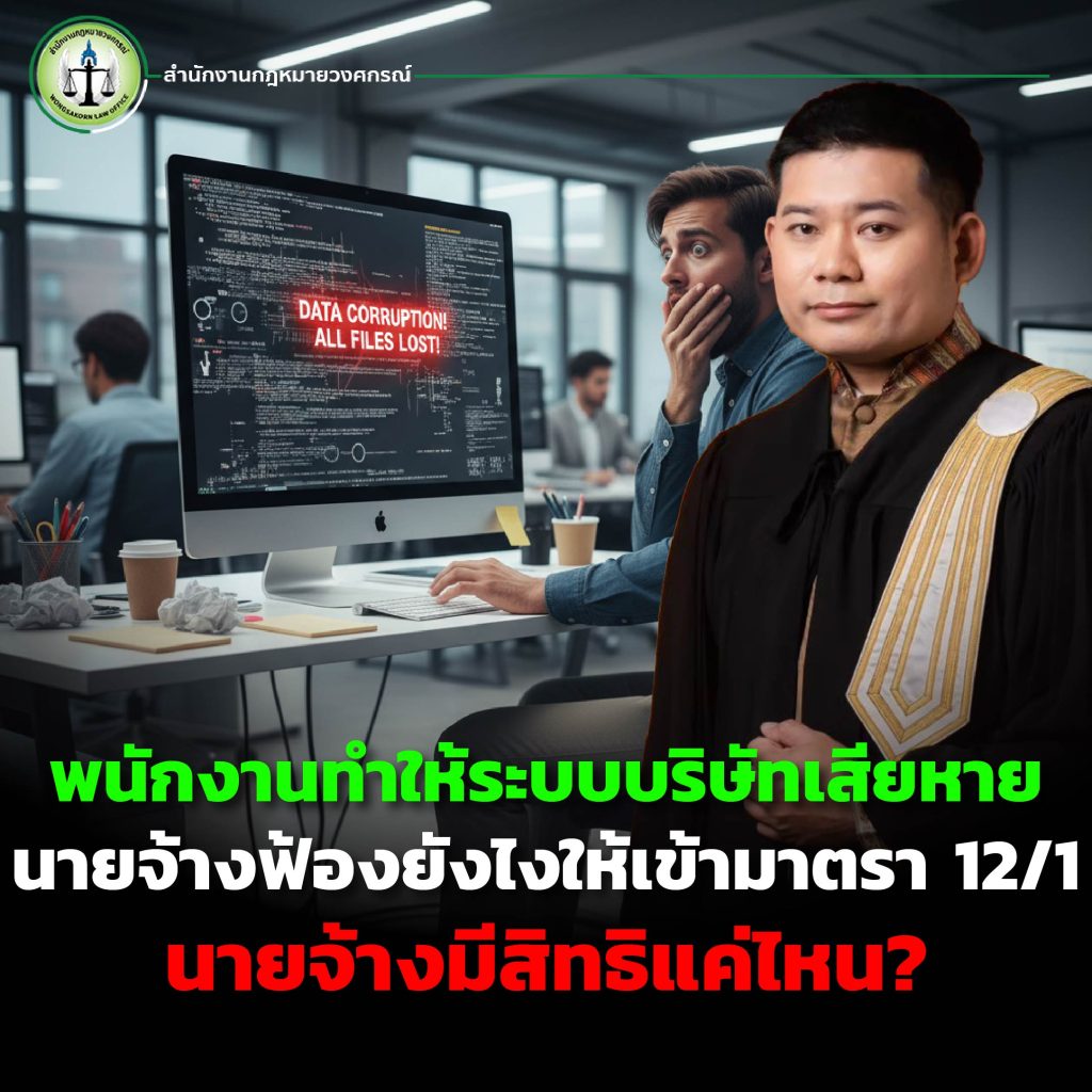 แต่หากเหตุการณ์นี้เกิดจากพนักงานภายในบริษัทเอง โดยเฉพาะในกรณีที่ลูกจ้างไม่พอใจนายจ้าง แล้วจงใจทำให้ระบบเสียหาย กรณีแบบนี้นายจ้างจะสามารถดำเนินการทางกฎหมายอย่างไรได้บ้าง? และจะฟ้องอย่างไรให้เข้ากับ มาตรา 12/1 ของพระราชบัญญัติว่าด้วยการกระทำความผิดเกี่ยวกับคอมพิวเตอร์ พ.ศ.2550?
