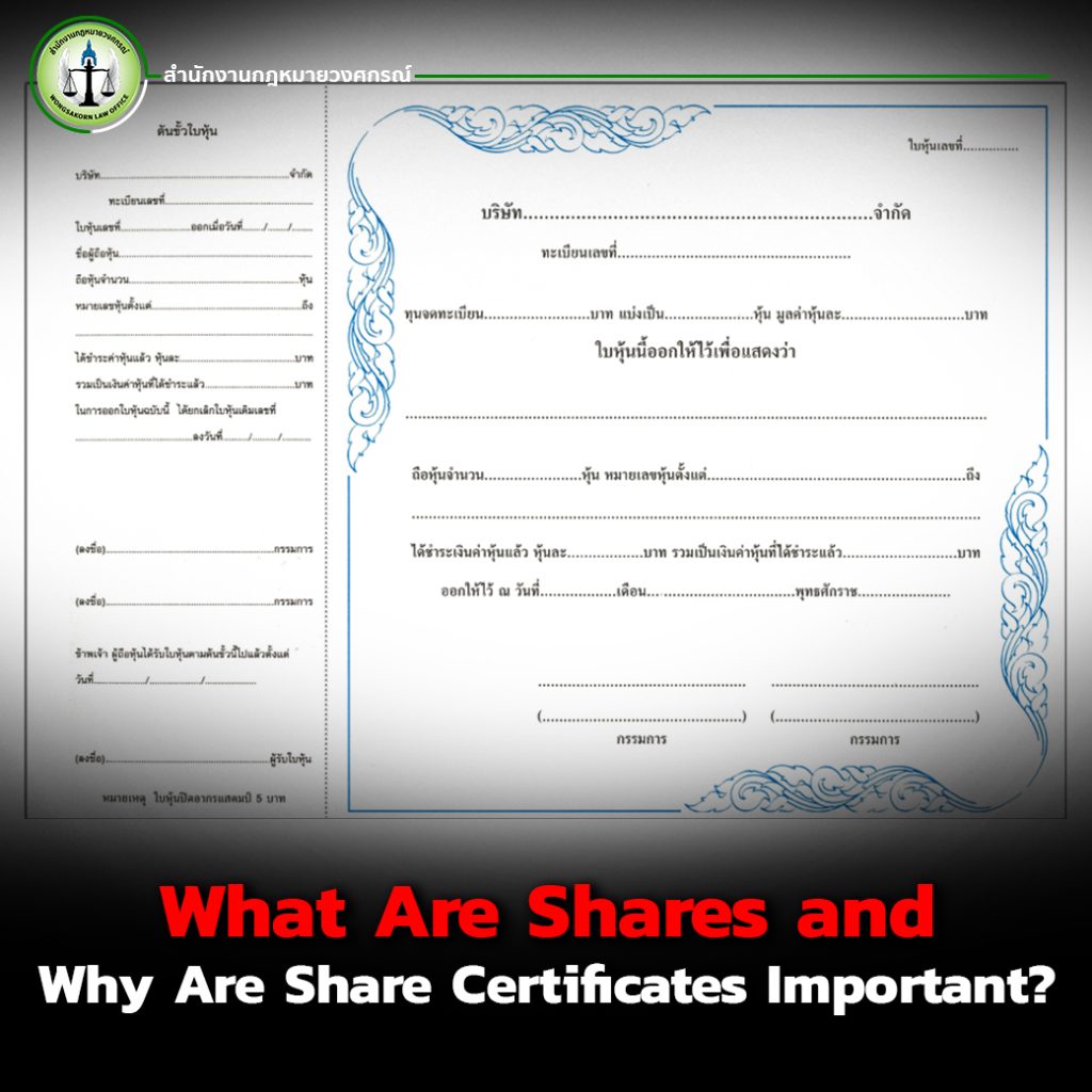 - Share certificates are official documents that prove shareholder ownership. Thai law requires directors to issue these within a specific time frame.