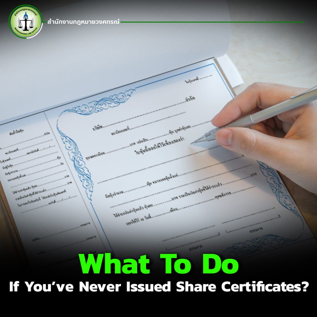 Many Thai SMEs and small businesses rely on accounting firms to handle everything — from registration to tax filing. However, the business owners or directors often have no idea that essential documents like share certificates or shareholder registers were never prepared. This means there may be no evidence of who truly owns the company.