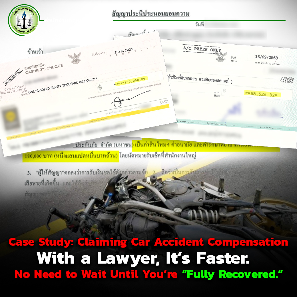 We offer legal services that cover all aspects of your needs. We have lawyers who specialize in the areas of law you need, whether it’s family cases, civil cases, inheritance cases, consumer cases, insurance cases, car accidents, death or serious injuries, or contract drafting. We understand that every case has specific needs and challenges. At Wongsakorn Law Office, we are ready to support and assist you to the fullest.