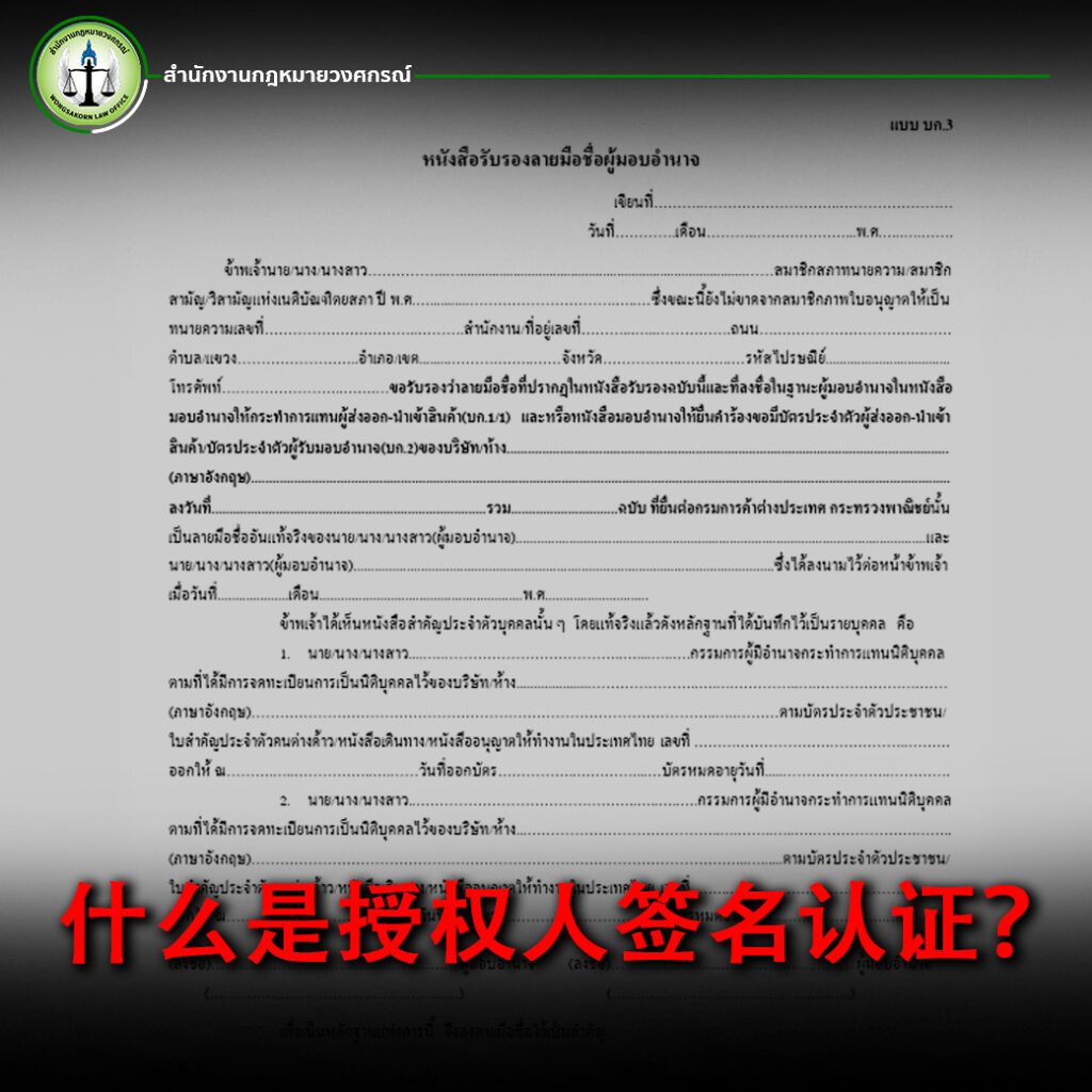 本篇文章由翁萨功律师事务所(Wongsakorn Law Office)撰写,将详细介绍签名认证的定义、该程序的重要性以及为什么授权人签名认证对于涉及国际贸易的企业至关重要。