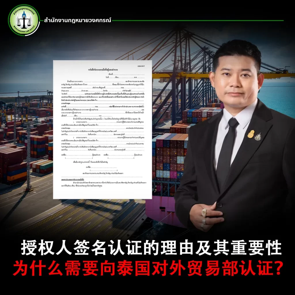 本篇文章由翁萨功律师事务所(Wongsakorn Law Office)撰写,将详细介绍签名认证的定义、该程序的重要性以及为什么授权人签名认证对于涉及国际贸易的企业至关重要。
